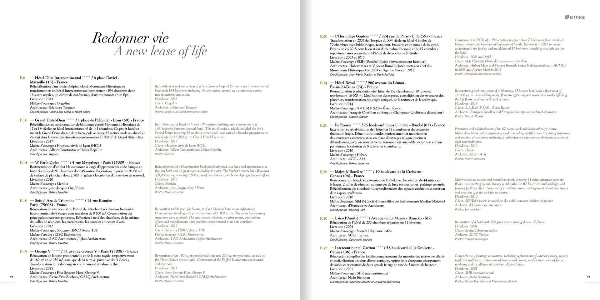 Livre édité par Eiffage, présentant ses réalisations dans l'hôtellerie de luxe (104 pages, bilingue) - Création et réalisation